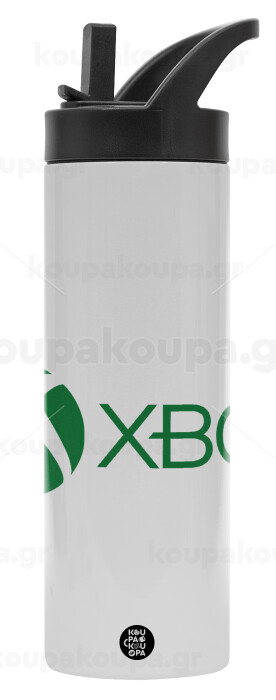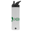 xbox, Metallic thermos bottle with straw & handle, stainless steel (Stainless steel 304), double-walled, 600ml.