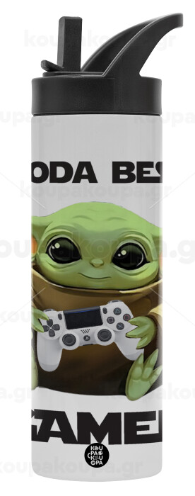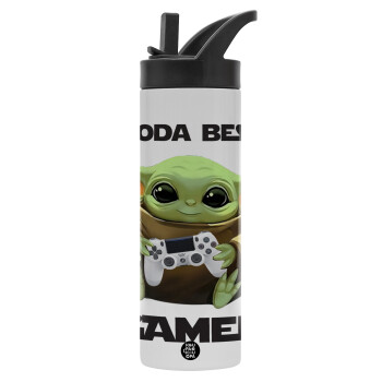 Yoda Best Gamer, Metallic thermos bottle with straw & handle, stainless steel (Stainless steel 304), double-walled, 600ml.