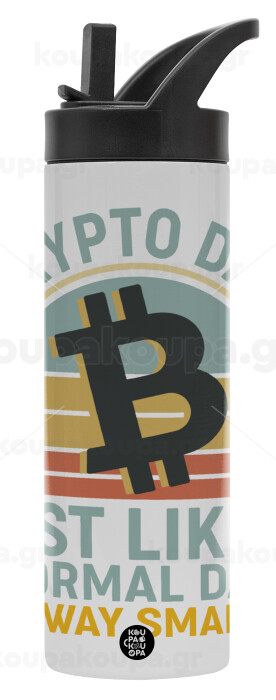 Crypto Dad, Metallic thermos bottle with straw & handle, stainless steel (Stainless steel 304), double-walled, 600ml.
