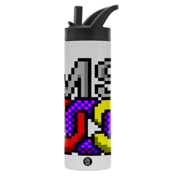 MsDos, Metallic thermos bottle with straw & handle, stainless steel (Stainless steel 304), double-walled, 600ml.