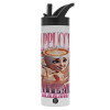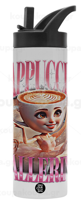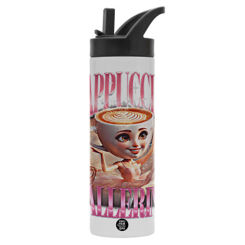 BALLERINA CAPUCHINA FUNK, Metallic thermos bottle with straw & handle, stainless steel (Stainless steel 304), double-walled, 600ml.