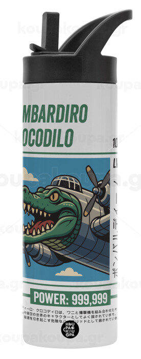 Bombardiro Crocodilo, Metallic thermos bottle with straw & handle, stainless steel (Stainless steel 304), double-walled, 600ml.