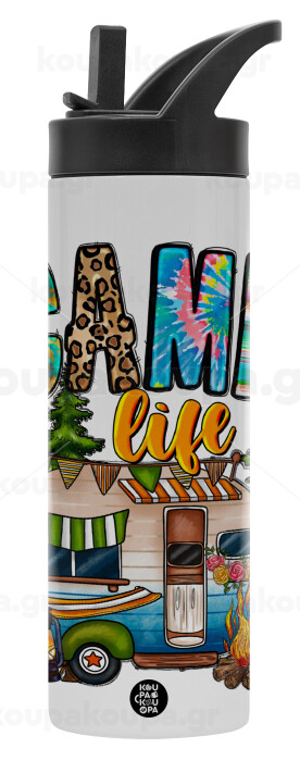 Camp Life, Metallic thermos bottle with straw & handle, stainless steel (Stainless steel 304), double-walled, 600ml.