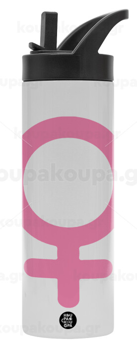 FEMALE, Metallic thermos bottle with straw & handle, stainless steel (Stainless steel 304), double-walled, 600ml.