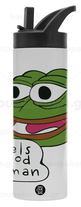 Pepe the frog, Metallic thermos bottle with straw & handle, stainless steel (Stainless steel 304), double-walled, 600ml.