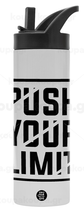 Push your limit, Metallic thermos bottle with straw & handle, stainless steel (Stainless steel 304), double-walled, 600ml.