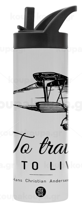 To travel is to live, Metallic thermos bottle with straw & handle, stainless steel (Stainless steel 304), double-walled, 600ml.