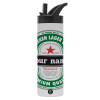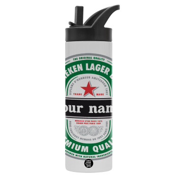 Heineken with name, Metallic thermos bottle with straw & handle, stainless steel (Stainless steel 304), double-walled, 600ml.