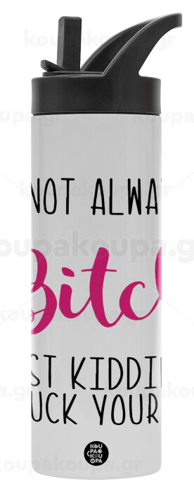 I'm not always a bitch, just kidding go f..k yourself , Metallic thermos bottle with straw & handle, stainless steel (Stainless steel 304), double-walled, 600ml.