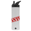 Wanted, Metallic thermos bottle with straw & handle, stainless steel (Stainless steel 304), double-walled, 600ml.