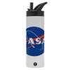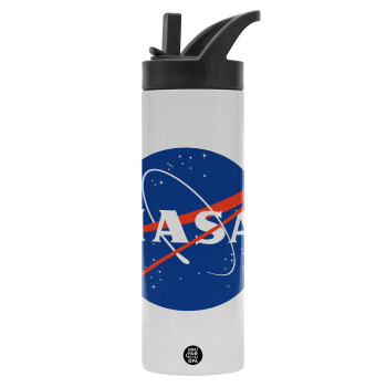 Nasa, Metallic thermos bottle with straw & handle, stainless steel (Stainless steel 304), double-walled, 600ml.