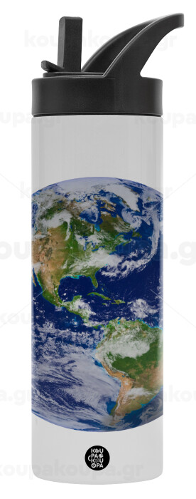 Planet Earth, Metallic thermos bottle with straw & handle, stainless steel (Stainless steel 304), double-walled, 600ml.