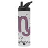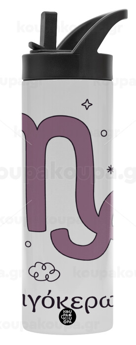 Ζώδια Αιγόκερως, Metallic thermos bottle with straw & handle, stainless steel (Stainless steel 304), double-walled, 600ml.