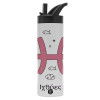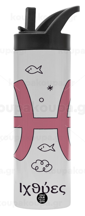 Ζώδια Ιχθύες, Metallic thermos bottle with straw & handle, stainless steel (Stainless steel 304), double-walled, 600ml.