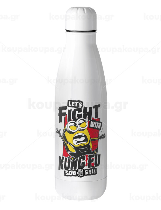 Minions Let's fight with kung fu sounds, Metal mug thermos (Stainless steel), 500ml