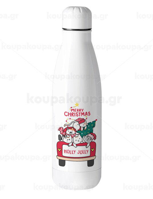 Merry Christmas cats in car, Metal mug thermos (Stainless steel), 500ml