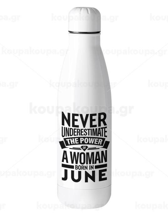 Never Underestimate the poer of a Woman born in..., Metal mug thermos (Stainless steel), 500ml