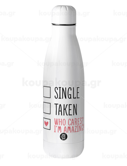 Single, Taken, Who cares i'm amazing, Metal mug thermos (Stainless steel), 500ml