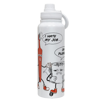 I hate my job, 1L Stainless Steel Thermal Bottle with Phone Holder & Double Wall Insulation