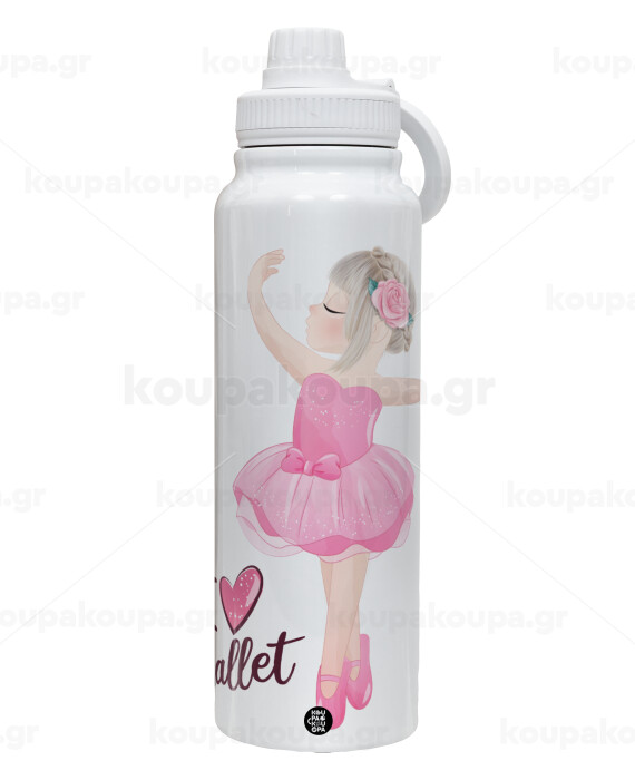 I Love Ballet, 1L Stainless Steel Thermal Bottle with Phone Holder & Double Wall Insulation