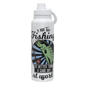 A bad day FISHING is better than a good day at work, 1L Stainless Steel Thermal Bottle with Phone Holder & Double Wall Insulation