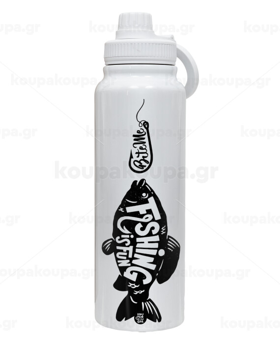 Fishing is fun, 1L Stainless Steel Thermal Bottle with Phone Holder & Double Wall Insulation