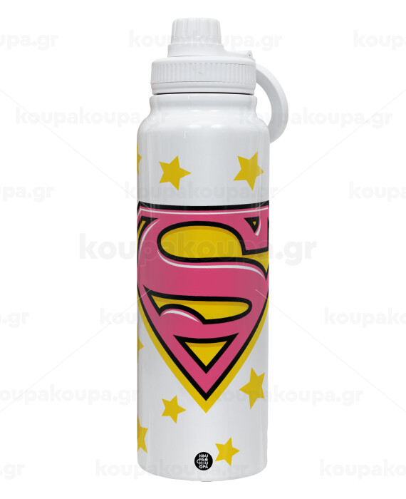 Superman Pink, 1L Stainless Steel Thermal Bottle with Phone Holder & Double Wall Insulation