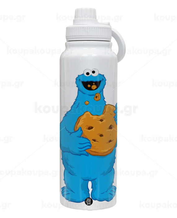Cookie Monster, 1L Stainless Steel Thermal Bottle with Phone Holder & Double Wall Insulation