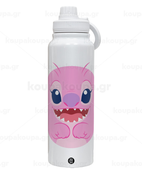 Lilo & Stitch Angel pink, 1L Stainless Steel Thermal Bottle with Phone Holder & Double Wall Insulation
