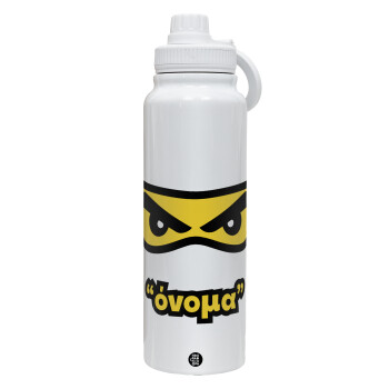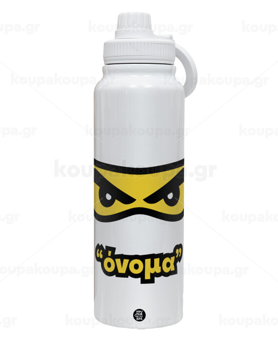 Ninja Eyes με όνομα, 1L Stainless Steel Thermal Bottle with Phone Holder & Double Wall Insulation