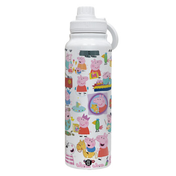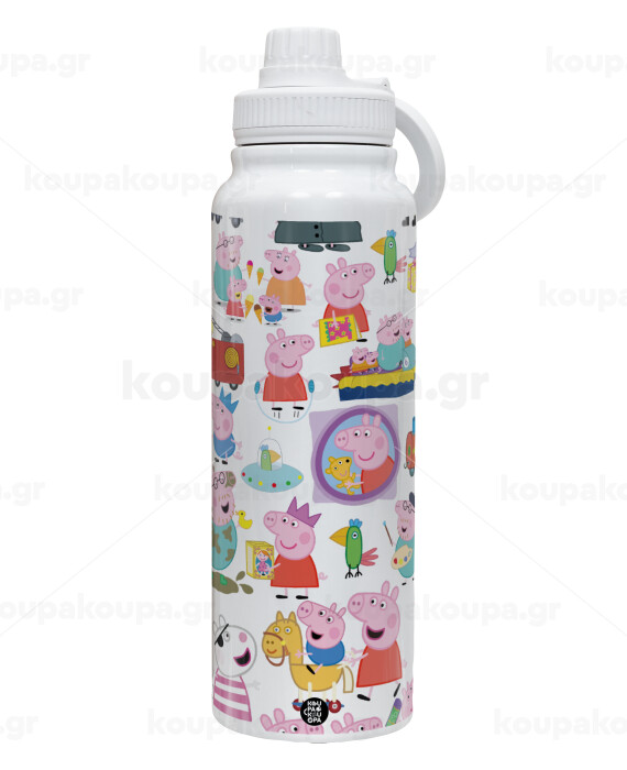 Peppa pig Characters, 1L Stainless Steel Thermal Bottle with Phone Holder & Double Wall Insulation
