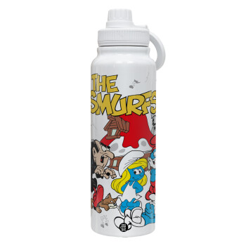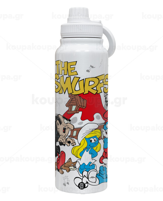The smurfs, 1L Stainless Steel Thermal Bottle with Phone Holder & Double Wall Insulation