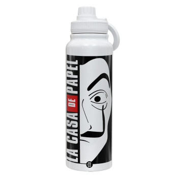La casa de papel vertical, 1L Stainless Steel Thermal Bottle with Phone Holder & Double Wall Insulation