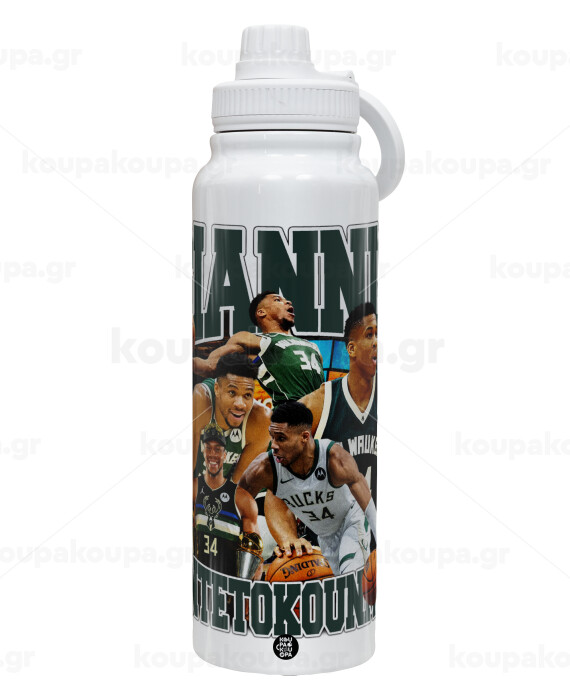 Giannis Antetokounmpo, 1L Stainless Steel Thermal Bottle with Phone Holder & Double Wall Insulation
