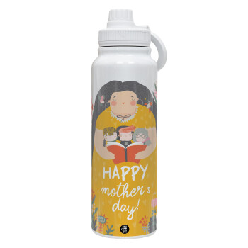 Cute mother reading book, happy mothers day, 1L Stainless Steel Thermal Bottle with Phone Holder & Double Wall Insulation