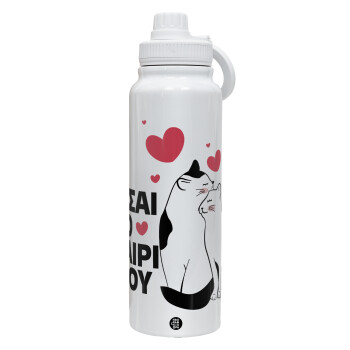 Είσαι το ταίρι μου, 1L Stainless Steel Thermal Bottle with Phone Holder & Double Wall Insulation