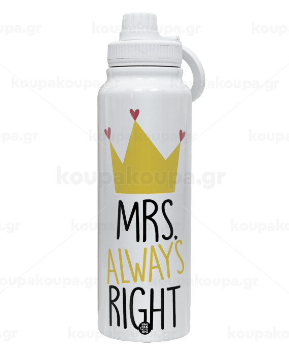 Mrs "Always" right, 1L Stainless Steel Thermal Bottle with Phone Holder & Double Wall Insulation