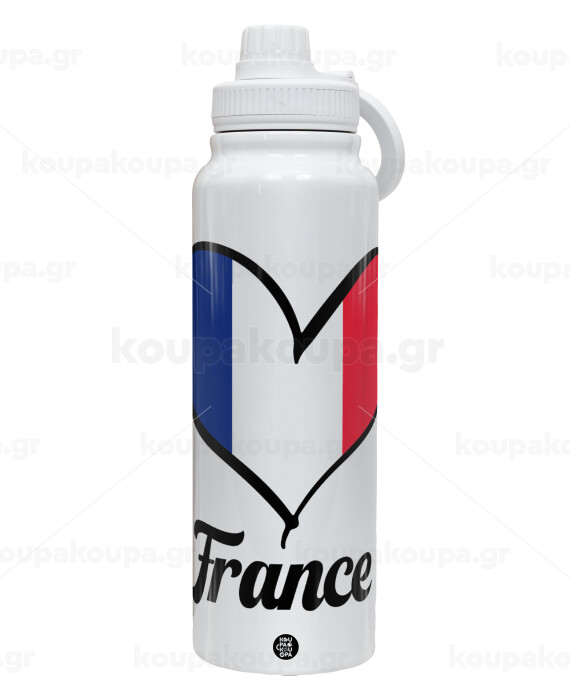 France flag, 1L Stainless Steel Thermal Bottle with Phone Holder & Double Wall Insulation