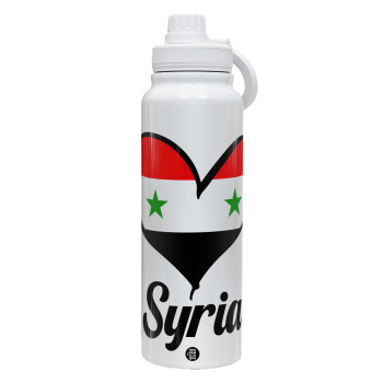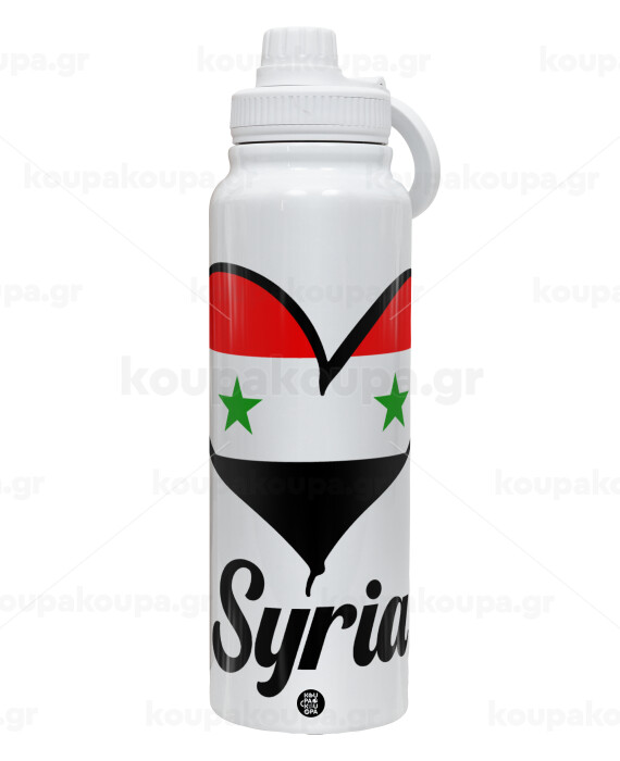 Syria flag, 1L Stainless Steel Thermal Bottle with Phone Holder & Double Wall Insulation