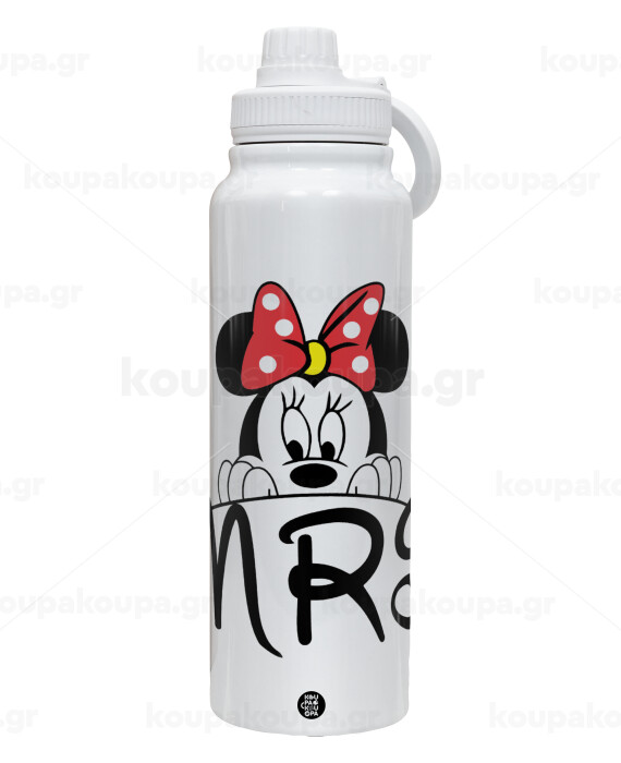 Minnie Mrs, 1L Stainless Steel Thermal Bottle with Phone Holder & Double Wall Insulation