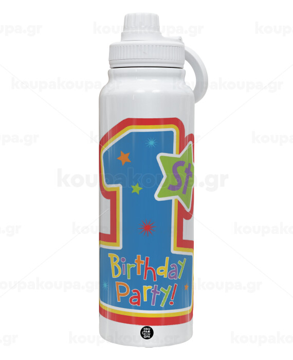Happy 1st Birthday, 1L Stainless Steel Thermal Bottle with Phone Holder & Double Wall Insulation