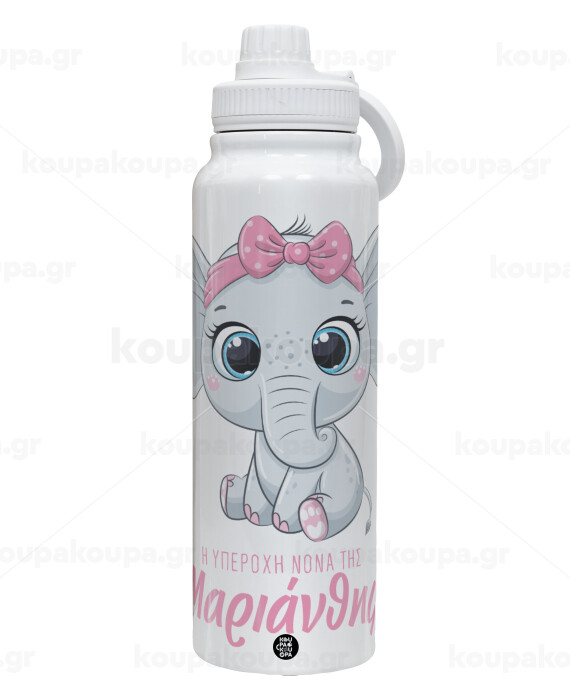 Η νονά μου, ελεφαντάκι ροζ, 1L Stainless Steel Thermal Bottle with Phone Holder & Double Wall Insulation