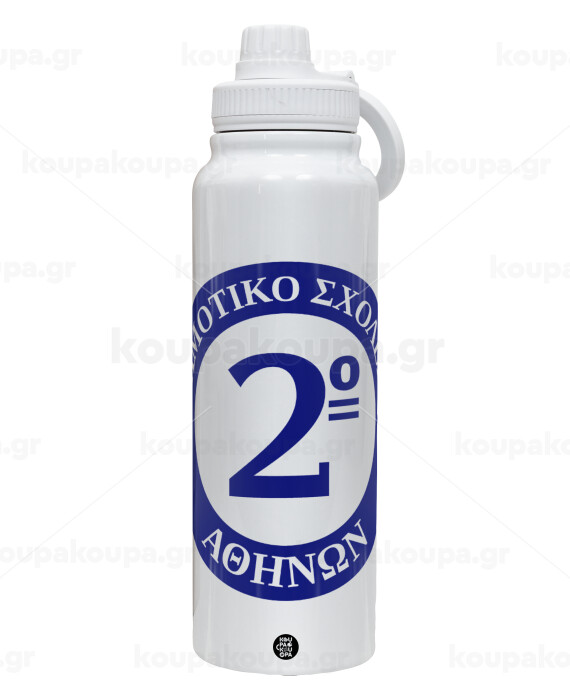 Έμβλημα Σχολικό μπλε, 1L Stainless Steel Thermal Bottle with Phone Holder & Double Wall Insulation