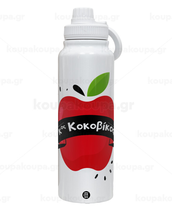 Αναμνηστικό Δώρο Δασκάλου Κόκκινο Μήλο, 1L Stainless Steel Thermal Bottle with Phone Holder & Double Wall Insulation