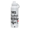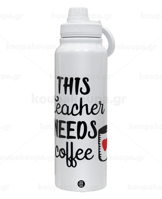Τhis teacher needs coffee, 1L Stainless Steel Thermal Bottle with Phone Holder & Double Wall Insulation