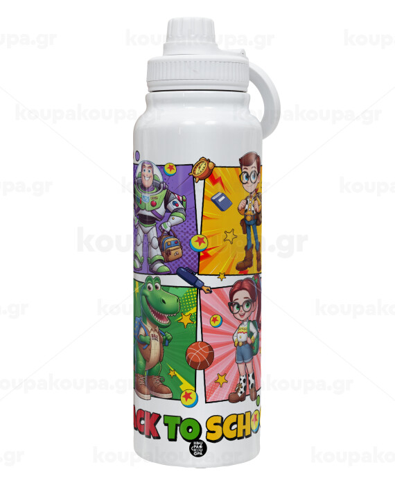 Back to the School Buzz & Friends, 1L Stainless Steel Thermal Bottle with Phone Holder & Double Wall Insulation