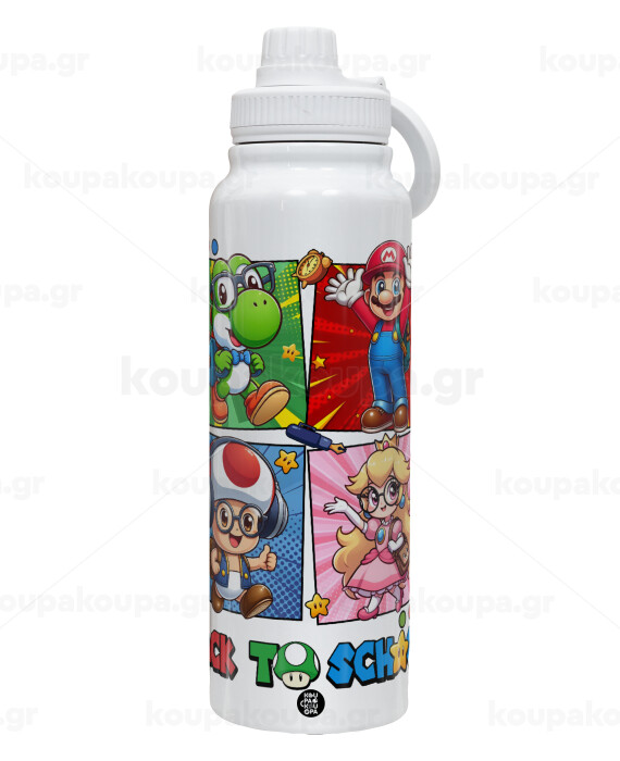 Back to the School Mario & Friends, 1L Stainless Steel Thermal Bottle with Phone Holder & Double Wall Insulation
