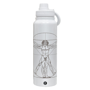 Leonardo da vinci Vitruvian Man, 1L Stainless Steel Thermal Bottle with Phone Holder & Double Wall Insulation