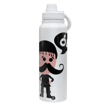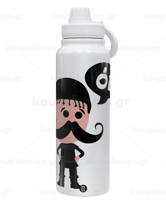 Κρητικός "Οι", 1L Stainless Steel Thermal Bottle with Phone Holder & Double Wall Insulation
