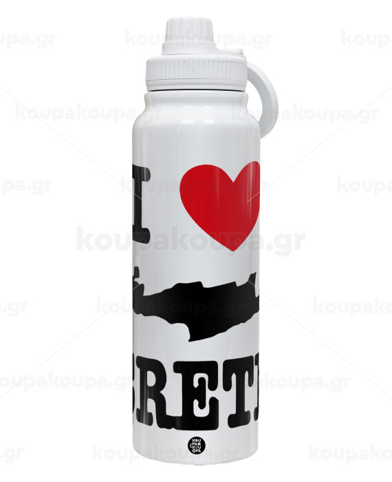 I Love Crete, 1L Stainless Steel Thermal Bottle with Phone Holder & Double Wall Insulation
